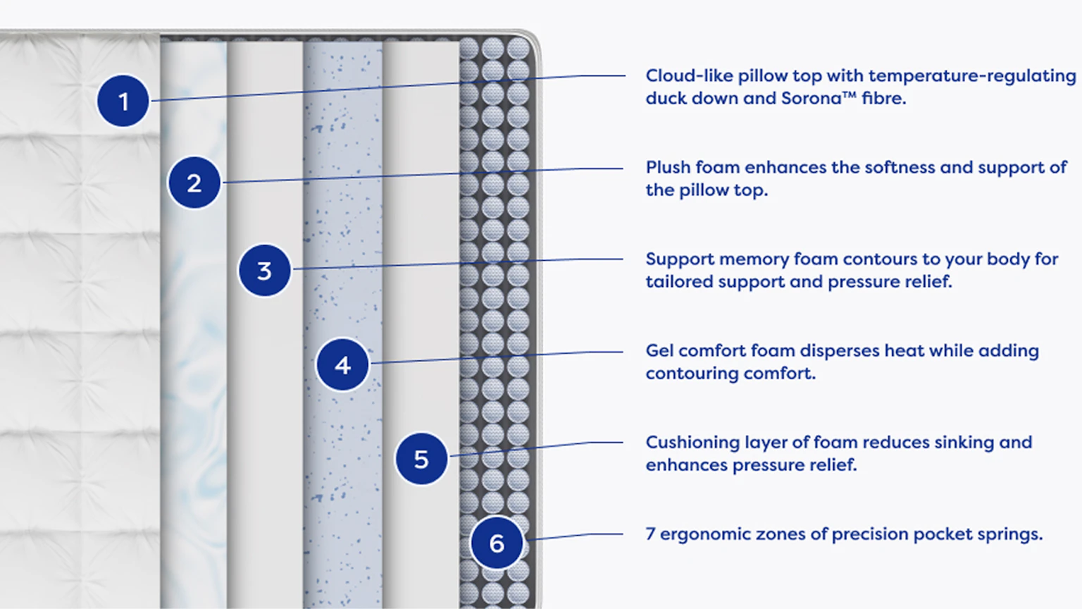 - 2250* precision pocket springs with 7 ergonomic zones for targeted support and zero partner disturbance.