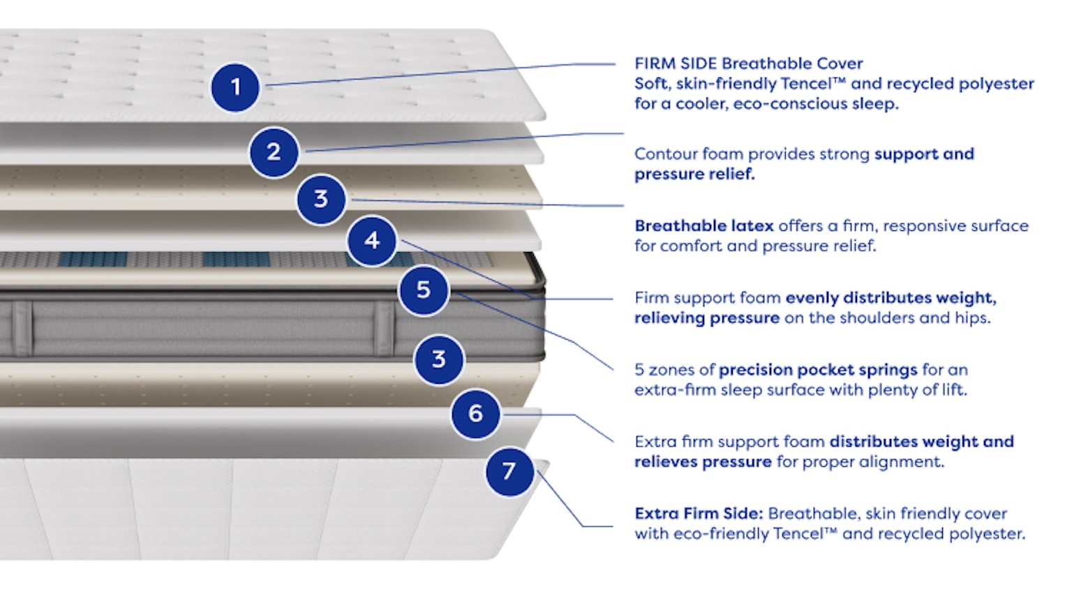 For serious firmness that doesn’t compromise on comfort, TrueFirm’s easy-flip design offers proper alignment and support tailored to you. The ‘Extra Firm’ side provides stability with minimal give — no sinking. The ‘Firm’ side gives solid support with subtle cushioning. Unsure? Fine-tune with a flip of the mattress.