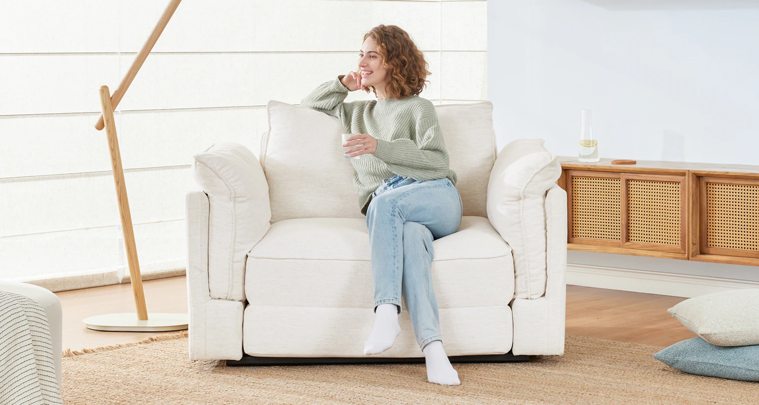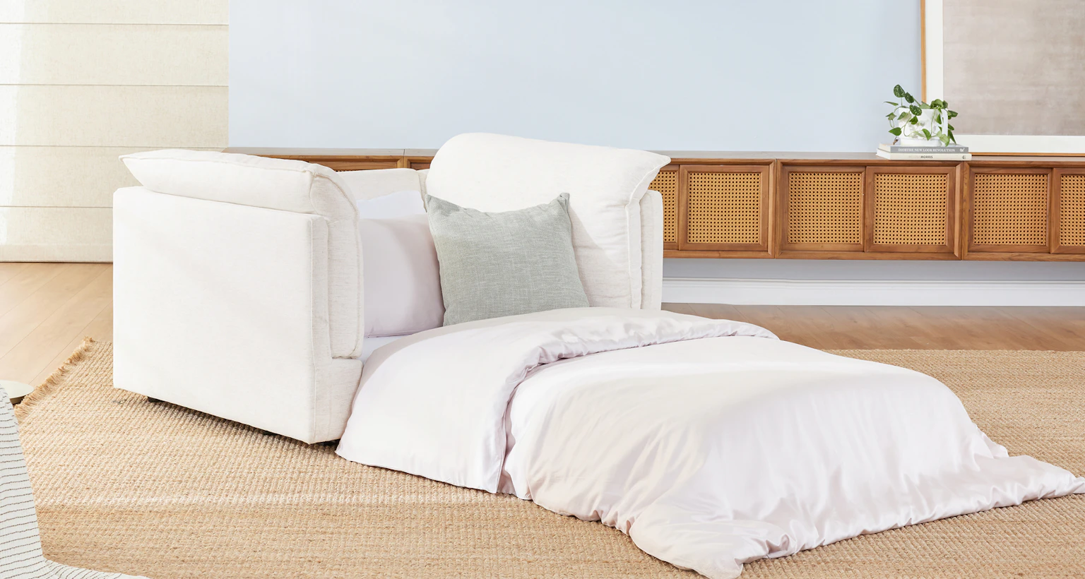 The Brook Armchair converts with a simple pull-forward motion in just seconds—no complicated mechanisms or heavy lifting required.