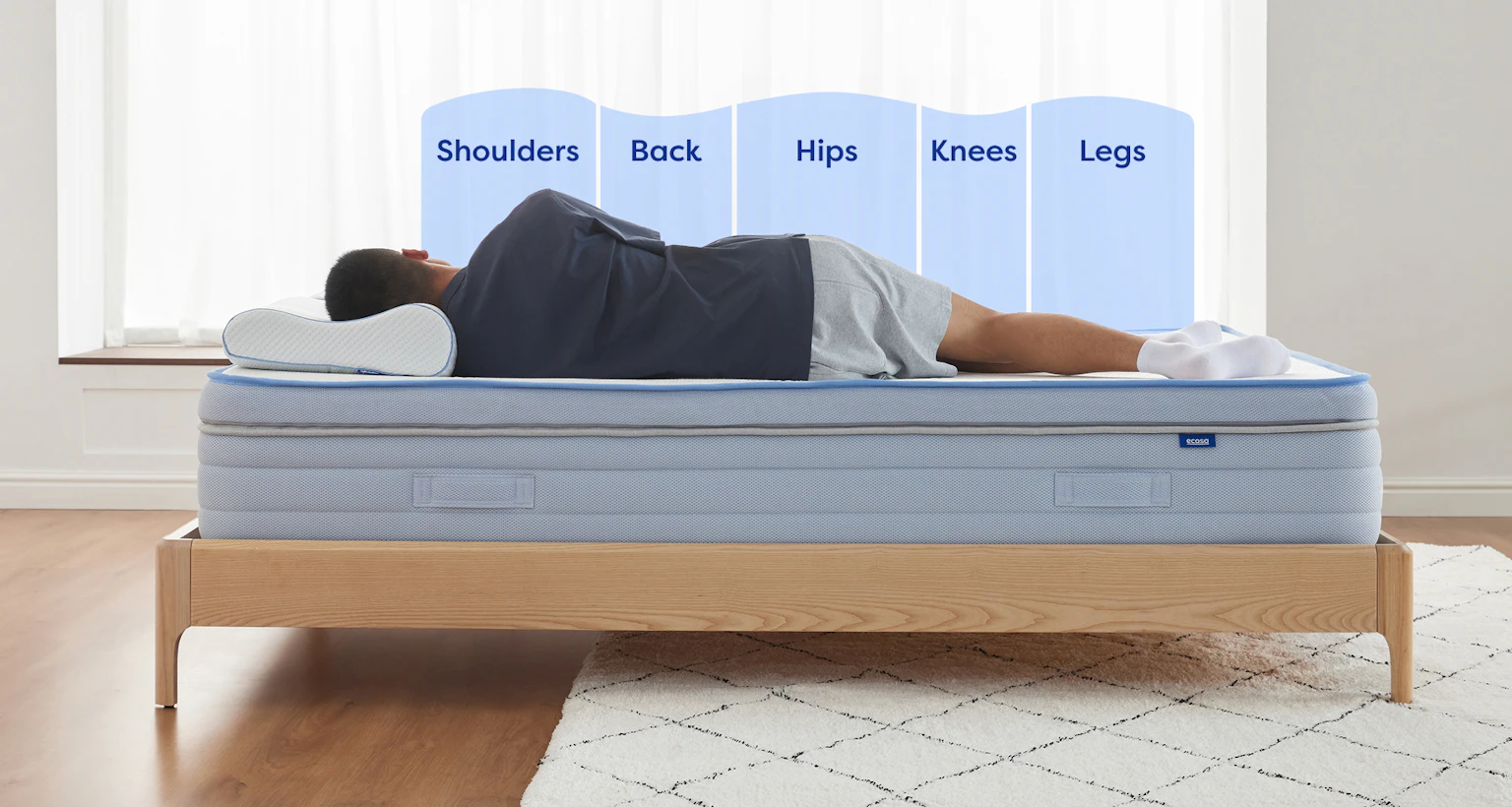 - 5 zones of precision pocket springs for zero-disturbance contouring.