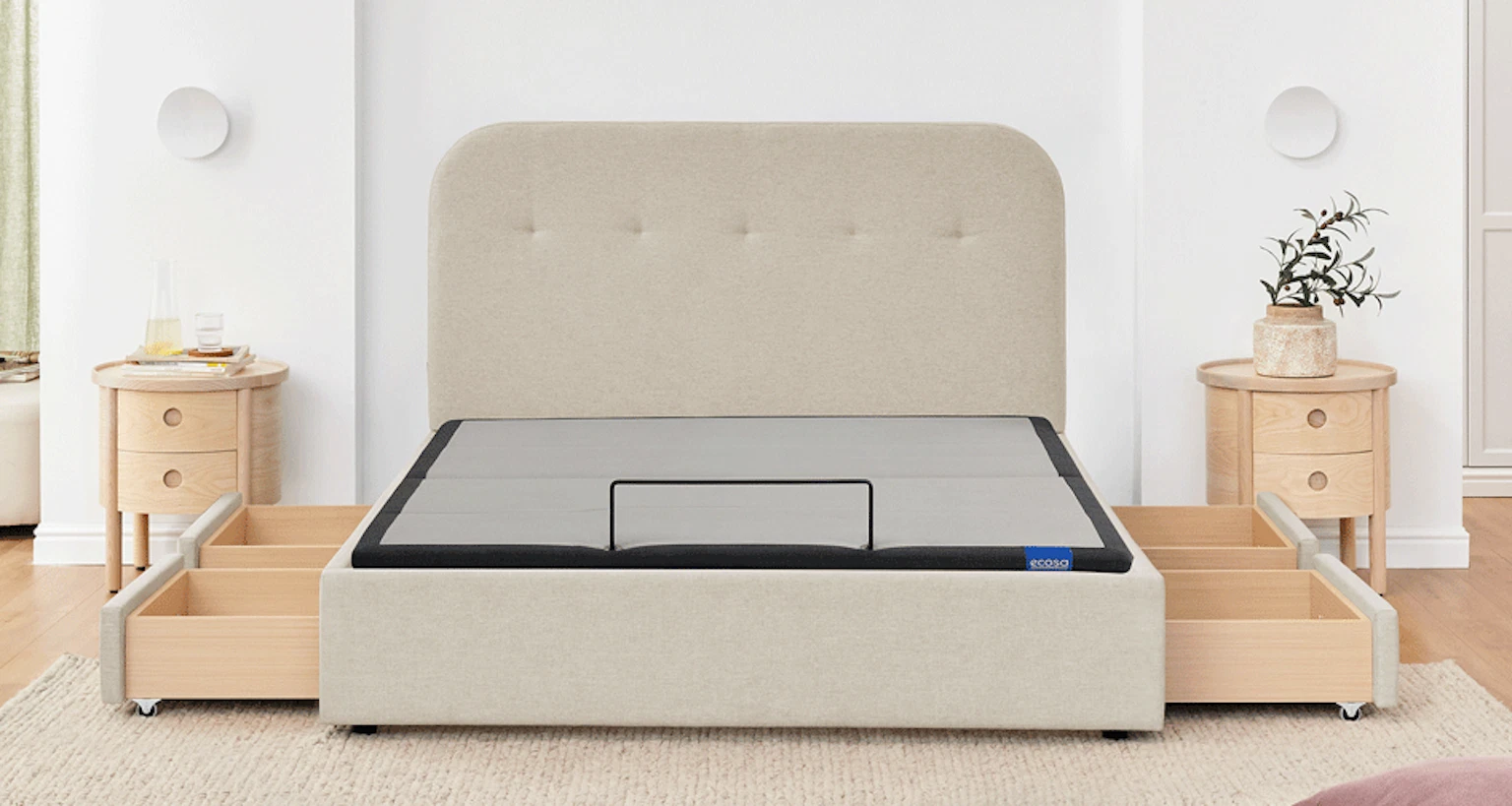 Smart design with storage and one-touch elevation gives you enhanced comfort without compromising on style. Compatible with most standard mattresses* — so you can build the ultimate setup for your sleep.