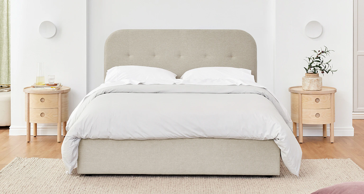 - Classic tufted bedhead in a modern silhouette.
