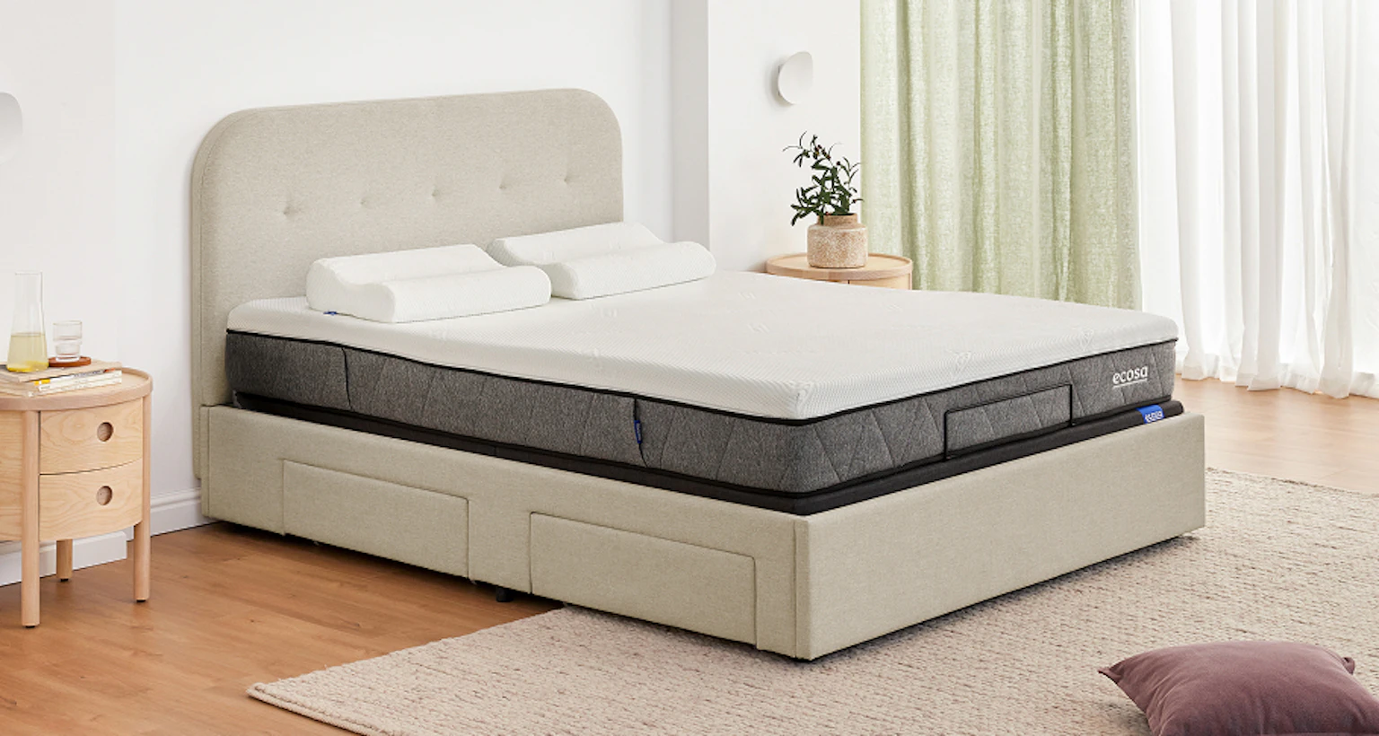 *Not compatible with Ecosa TrueFirm Mattress, Bonnel spring mattresses, or mattresses over 40cm in height. Before purchasing, confirm with your mattress brand if they are compatible with adjustable beds.