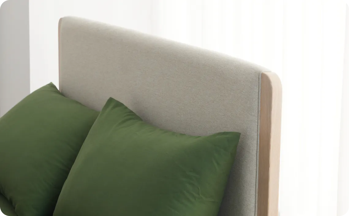 Love the style and strength of timber but crave the cosy feel of fabric? In solid European Ash with a chic upholstered headboard, our Haven Bed Frame is made for you.