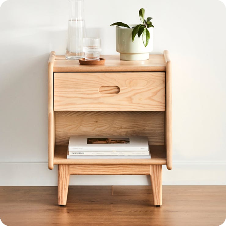 Pre-assembled with a soft-close drawer, our timber bedside tables pair perfectly with the Rise Bed Frame. Store charging devices as you snooze for a 90% reduction in radiation.