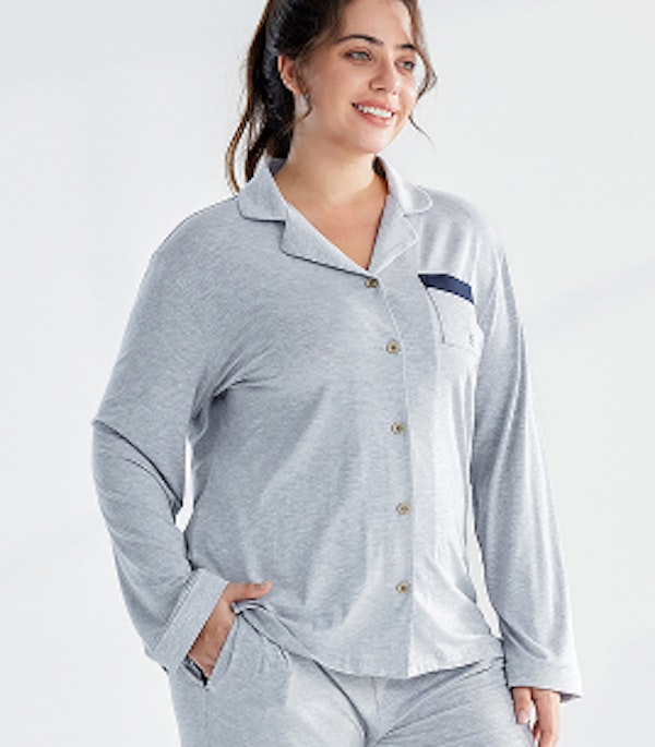 Smooth, hypoallergenic and lightweight but cosy, our women’s long sleeve pyjamas come in a chic palette of lavender, grey marle and navy, with relaxed, fuss-free designs for elevated sleep (and lounging) style.
